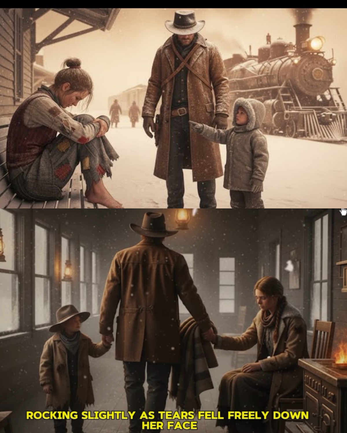 “What is it, son?” Noah slowly raised his mitten‑covered hand and pointed toward the far end of the platform where an old wooden bench sat beneath the station roof. “There,” Noah said softly. “She’s there.” Ethan followed the direction of his son’s finger.