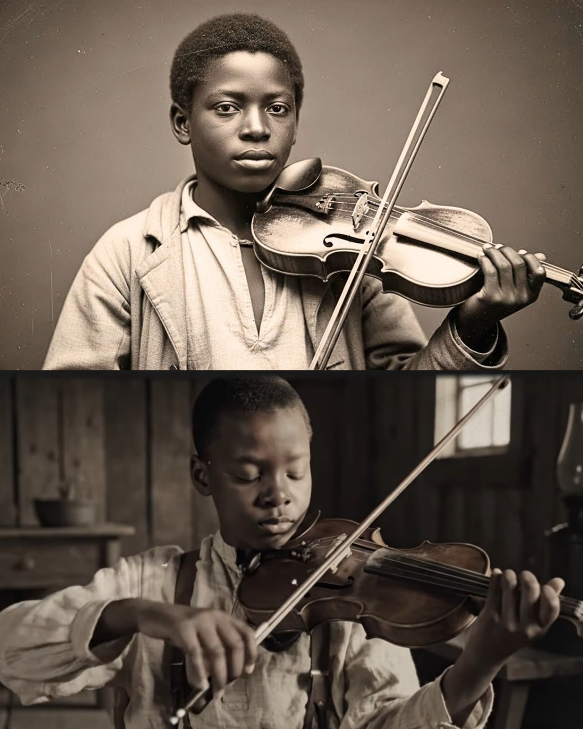 “Tobias Thorne.” The world tilted. The old master who taught him to play, who gave him the violin—his father. “No.” “I was 17,” Sarah said, words rushing like a broken dam. “He was 45. I worked in the big house. I didn’t have a choice.” If Tobias was his father, Colonel Silas Thorne was his half-brother.