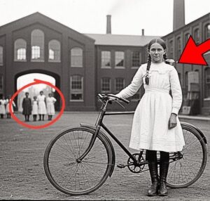 Among cracked glass plates and faded prints, one image stood out: a nine-year-old girl with a bicycle before a red-brick warehouse. Her name was handwritten in the margin: Lydia Carter, 1902. The composition was oddly refined, clearly taken by a professional, likely commissioned by the mill owners. Lydia’s smile looked genuine, yet her posture was stiff—almost rehearsed. When Elena scanned the image at high resolution, details emerged that changed everything.