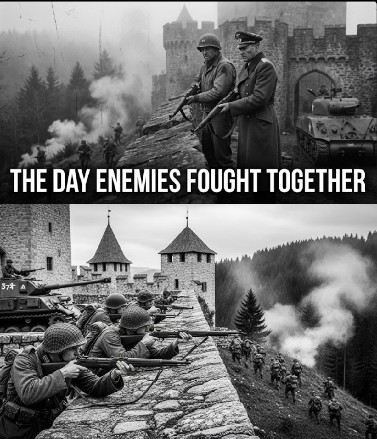 They fight a common enemy—the Waffen-SS. A fanatical SS force climbs the hill to slaughter everyone inside. The Americans and Germans have one tank, limited ammo, and they are protecting the war’s most valuable prisoners: French prime ministers and generals. This isn’t a movie script. It happened—the only time in WWII the U.S. Army and German Army fought as allies.
