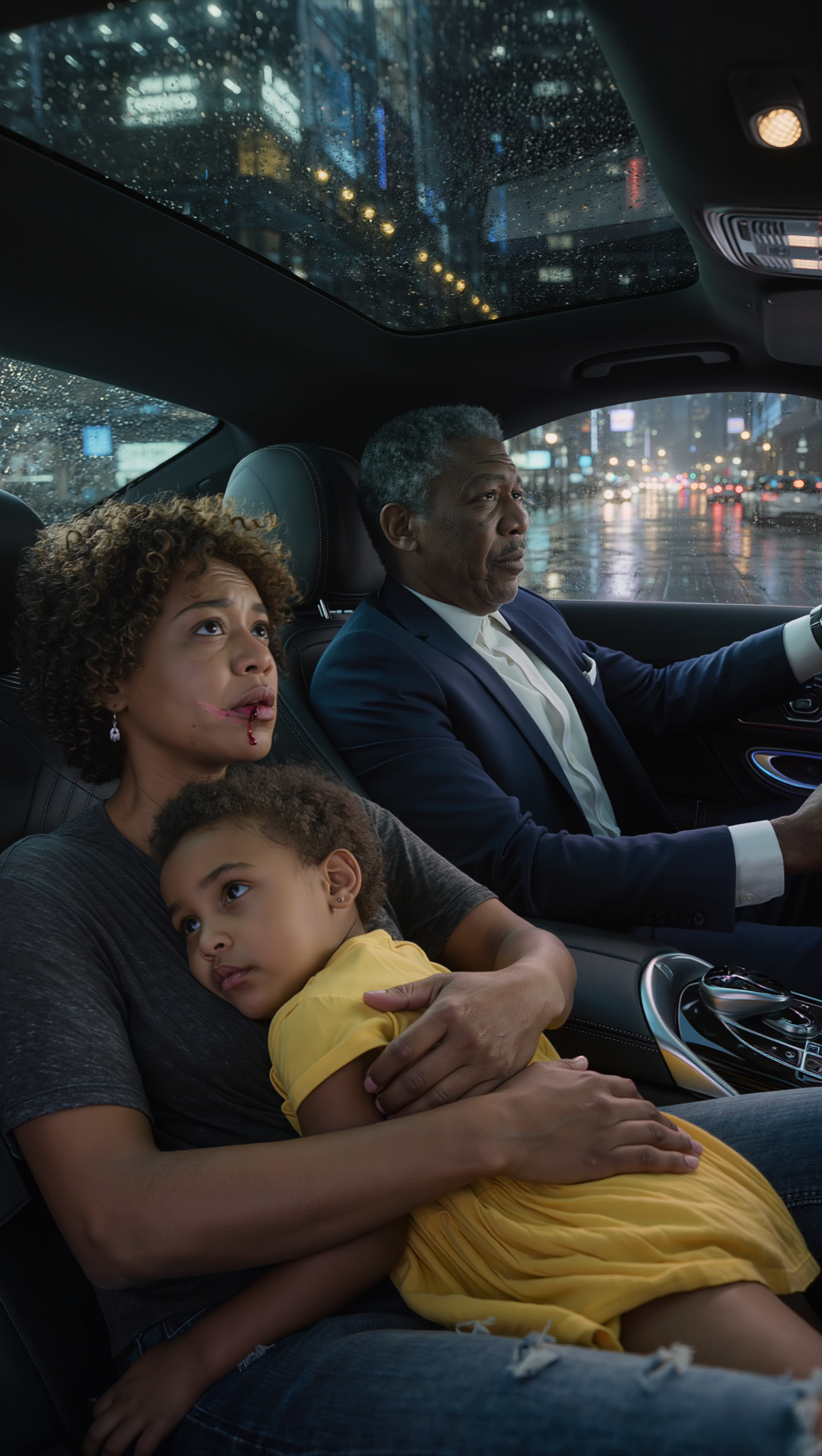 She rounded a corner and saw it: a black Mercedes idling at a red light, windows tinted darker than the night itself. The door was unlocked. She didn’t think. She yanked it open, threw Zara inside, and dove in after her. “Drive. Please, just drive,” she screamed, her voice breaking.
