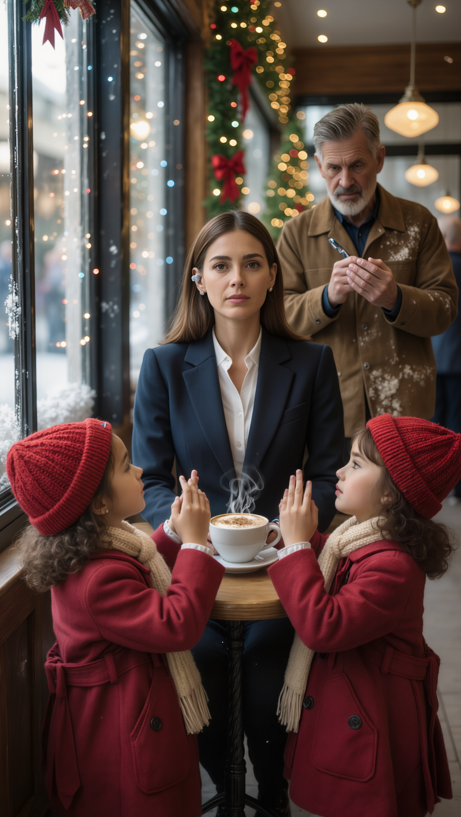 She reached for her latte, trying to steady herself, when a movement caught her eye. Two little girls appeared at the edge of her table—identical, maybe six years old, with dark curls escaping from red knit hats and matching green coats. Their eyes were bright with fearless curiosity. But it was their hands that stopped Cassidy’s breath. Small fingers moved in perfect American Sign Language.