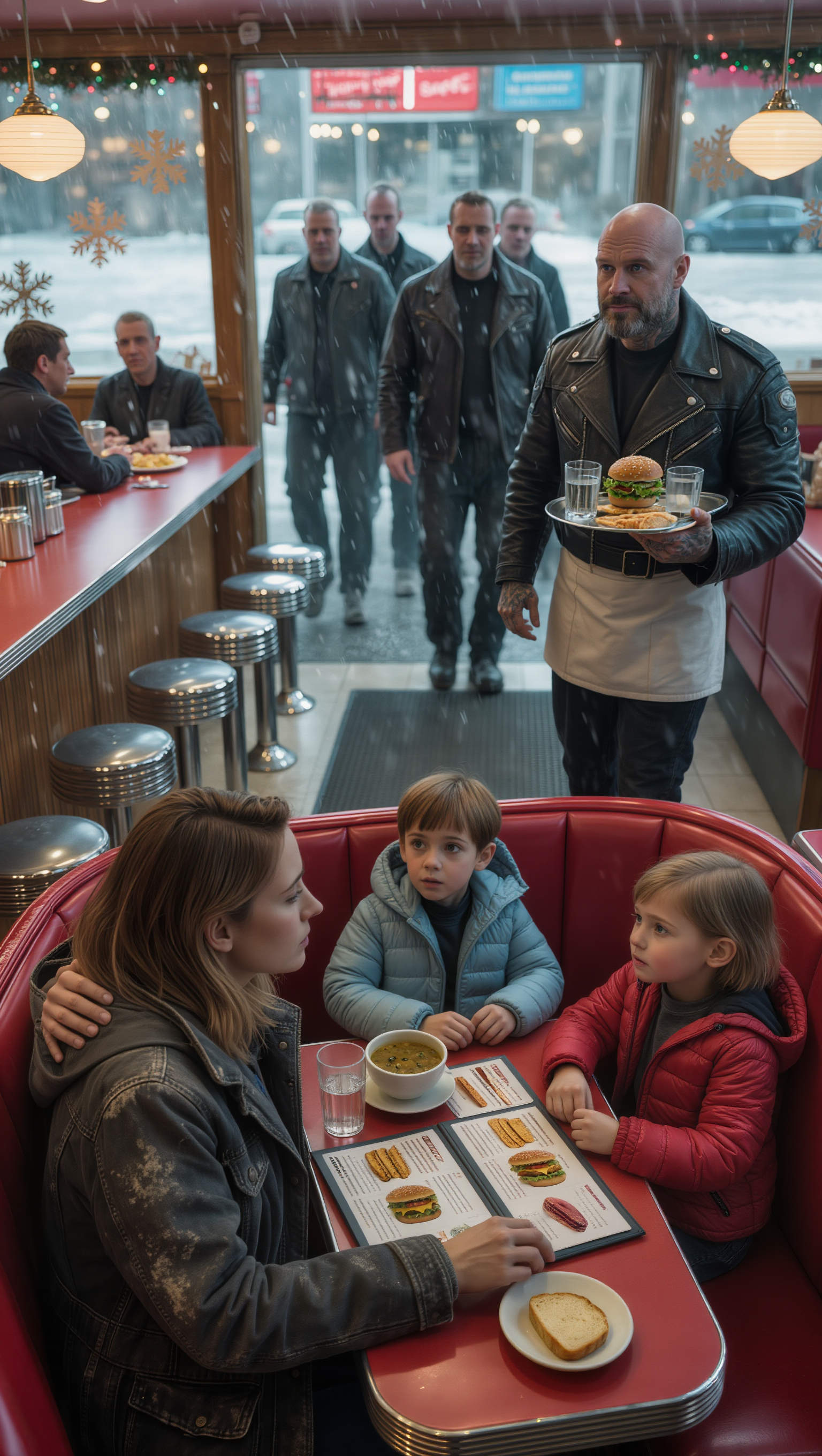 The warmth of the diner, the echo of laughter, and the children’s happiness faded the moment the door opened. A sharp blast of icy wind rushed inside, carrying with it something darker than the cold—an unspoken sense of danger.