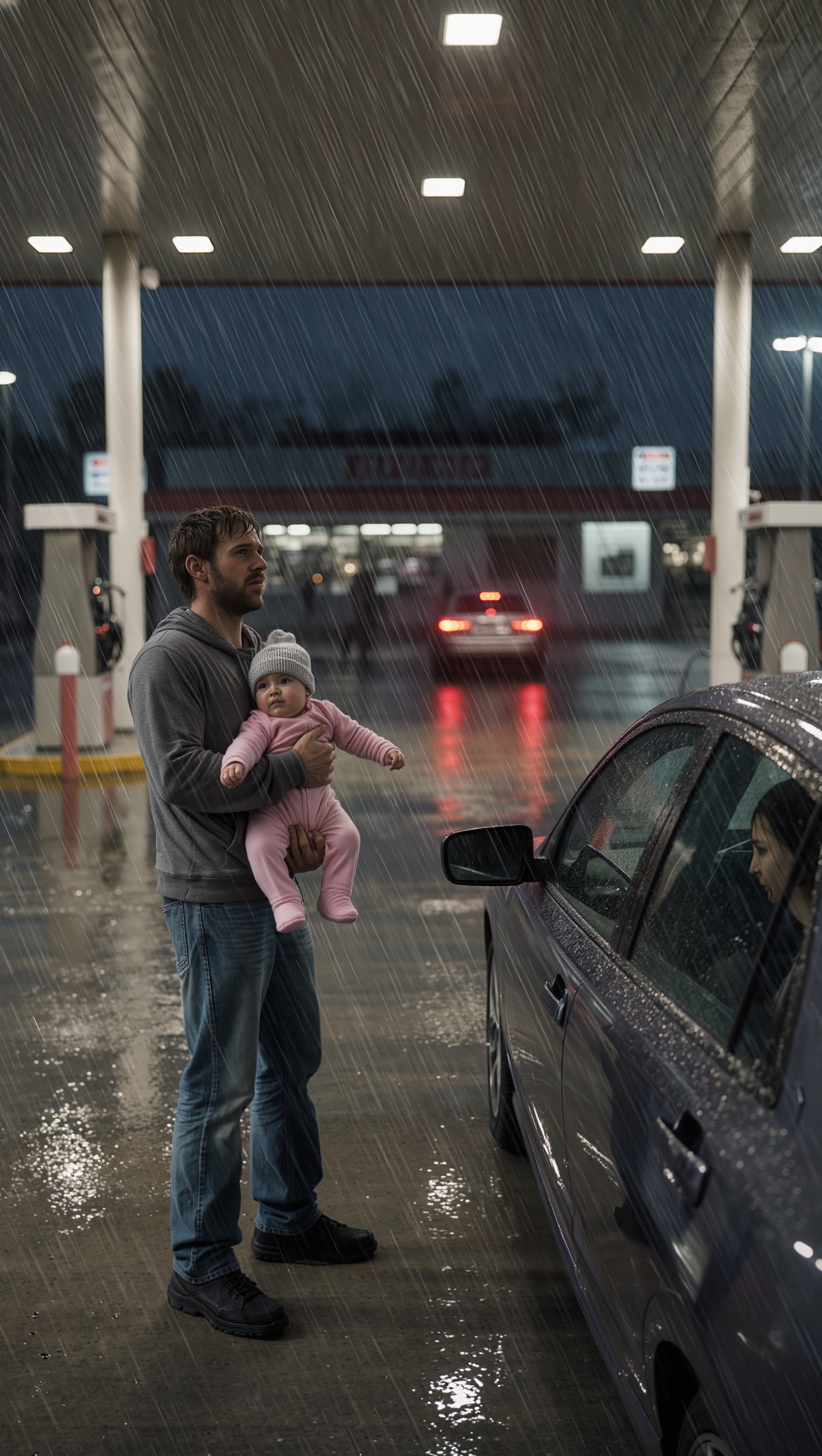 Alex had just stepped inside to pay for gas and grab a bottle of water. When he returned, his wife Vanessa—and their aging Honda Accord—were gone. All he had left was his six-month-old daughter, Emma, strapped to his chest, crying and clutching his jacket with tiny fists. His phone buzzed. Vanessa’s message was short and brutal: “I can’t do this anymore. She’s your problem now. Don’t try to find me.”