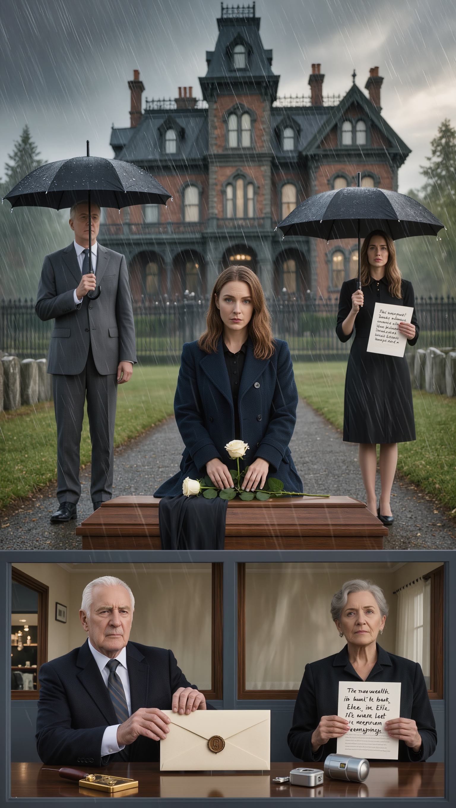 As she stood, she saw a figure watching from the porch. Mr. Silus Thorne, Arthur’s attorney and oldest friend, nodded solemnly. Flora felt a pit form in her stomach. She didn’t care about the money, but she knew her siblings were sharks circling for blood.