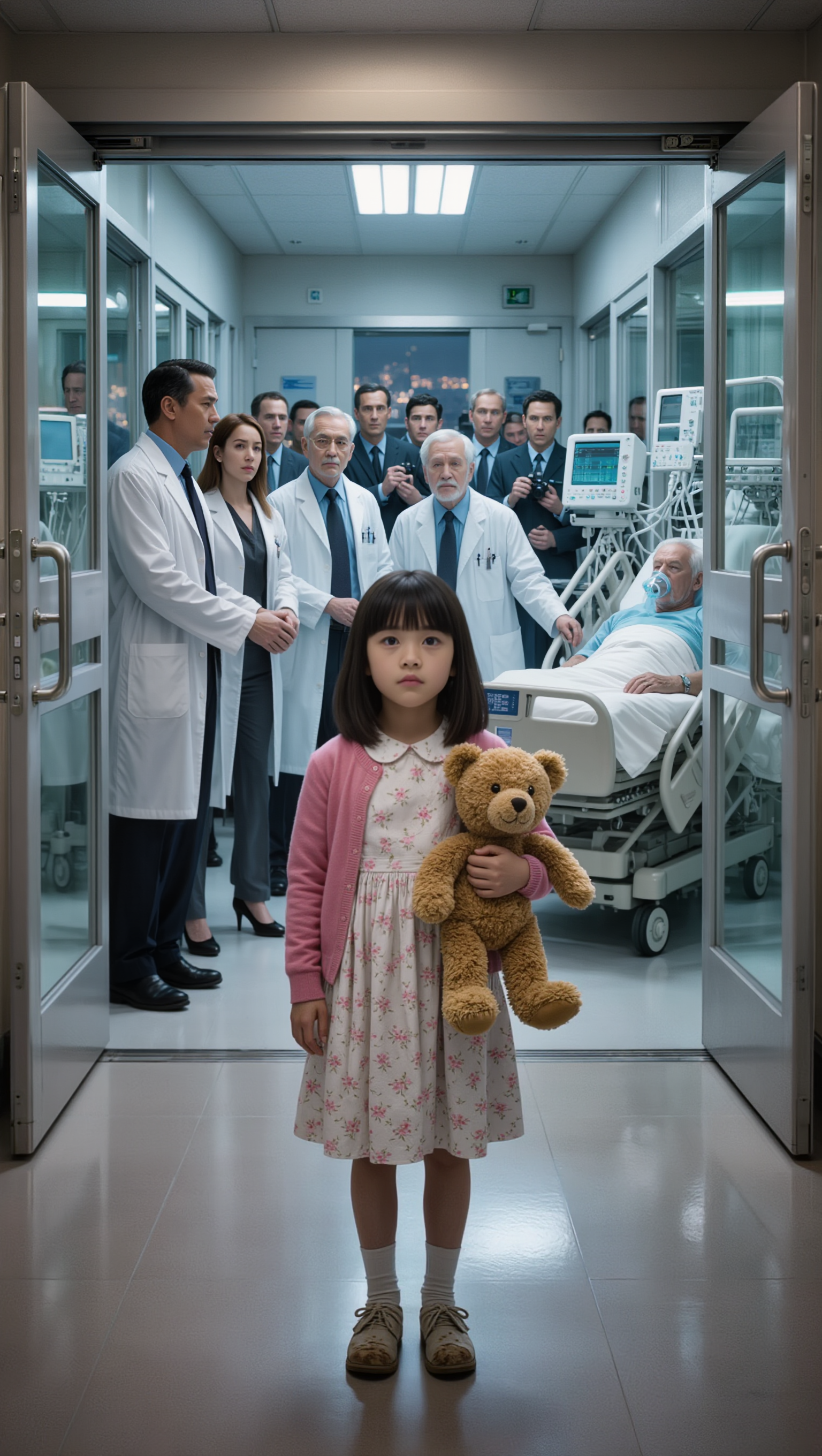 In the corner of the hallway, almost invisible among the chaos, 7-year-old Lucy Martinez sat quietly on a waiting room chair, swinging her legs. Her mother, Maria, had been working double shifts cleaning the ICU floors, trying to stay close to the unfolding drama. Lucy clutched a worn teddy bear and watched the parade of important-looking doctors with wide, observant eyes.